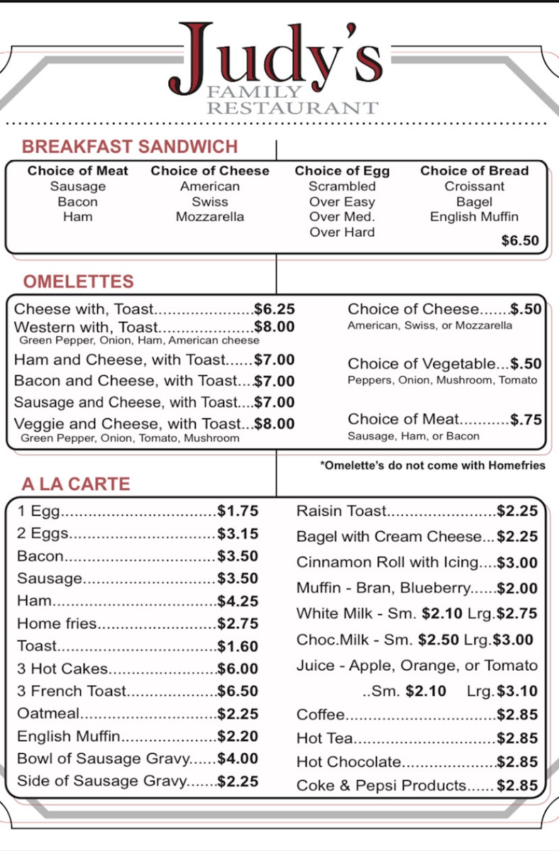 2 Eggs With 4 Bacon, Or 4 Sausage Links, Or 1 Sausage Patty & Toast